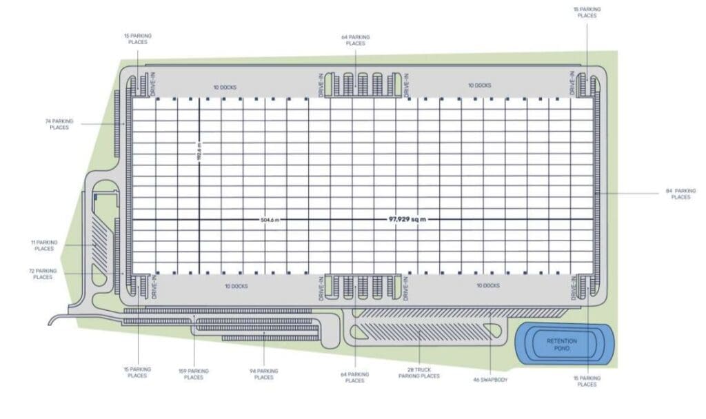 The planned construction of a 94,137 sq m hall, which will be located in the existing Joseph industrial zone. The hall is designed with an above-standard clear height of 15.5 m, complete LED lighting, and BREEAM Excellent certification. Possibility of expansion up to 180,000 sq m. The premises will be suitable for storage, logistics, distribution, or light production.