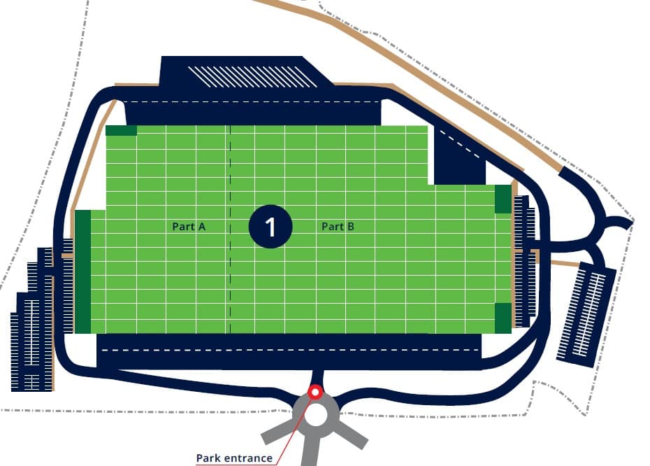 The area consists of one modern industrial hall with a total area of 53,000 sq m. The buildings are designed with a standard clear height of 10 m and will feature technical standards such as loading docks and drive-ins. One building has been completed, while the second building will be constructed for a specific tenant. The premises are suitable for warehousing, logistics, distribution, or light production.