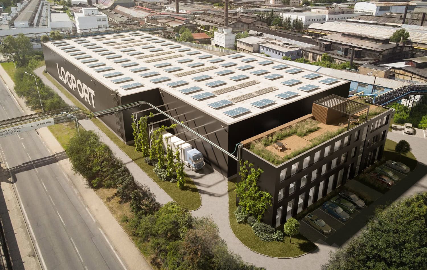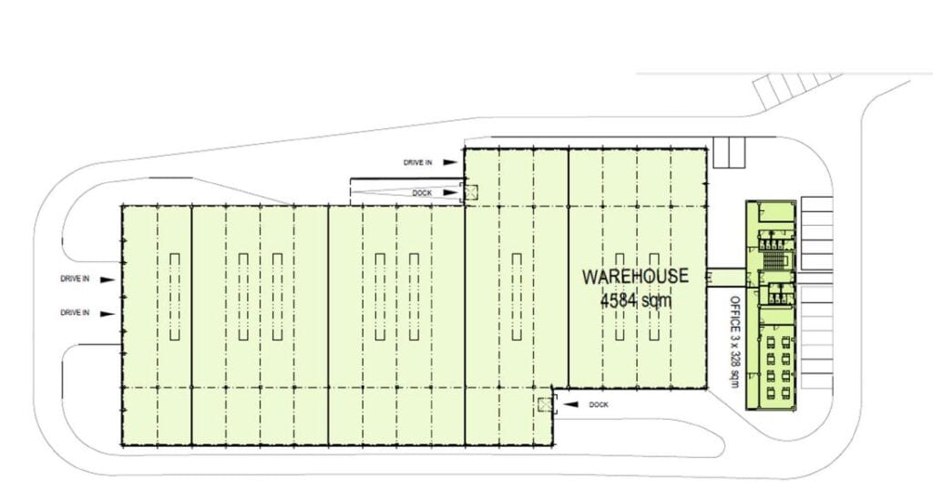 A modern industrial building with an area of approximately 5,300 sq m. The building was designed with a clear height of 10.5 m and features both standard technical specifications and sustainable elements such as solar panels and charging stations for electric vehicles. The project was developed by revitalizing a brownfield site.. Thanks to its location, there is the possibility of a 30MW electrical connection, and the space can be used for classic warehousing, light and heavy production.