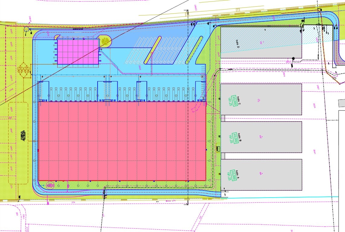 Jedna průmyslová hala o celkové velikosti 19 584 m2. Budova je navržena se světlou výškou 10 m a nosností podlahy 6 t/m2. Prostory budou vhodné pro skladování, logistiku, distribuci či lehkou výrobu.