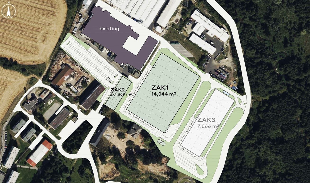 Areál tvoří dvě průmyslové haly, jejichž souhrnná pronajímatelná plocha čítá 21 500 m2. Stávající prostory jsou v současné době obsazeny dlouhodobým nájemcem, je však možno nabídnout novou výstavbu. V plánu je výstavba další haly o velikosti 7 000 m2.