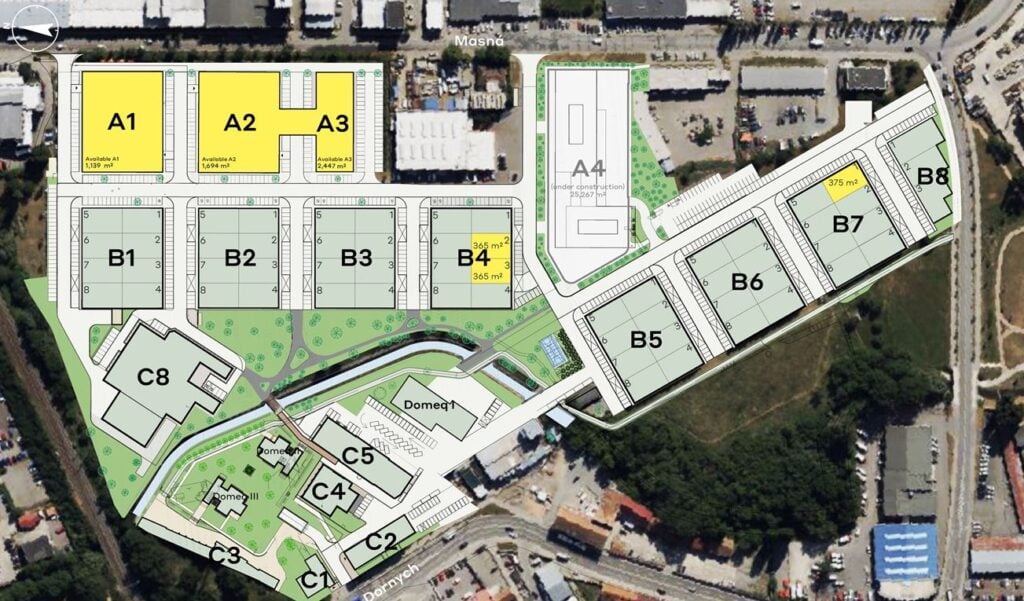 Moderní business park, který nabízí jedinečnou kombinaci různých typů nemovitostí - malé komerční jednotky vhodné pro skladování, výrobu, výzkum a vývoj nebo jako showroomy, moderní administrativní prostory a nájemní byty pro mladé profesionály. Malé komerční jednotky byly postaveny se světlou výškou skladových prostor 7 m a každá z nich je vybavena přímým vjezdem. Nejmenší pronajímatelná jednotka má rozlohu 450 m2.