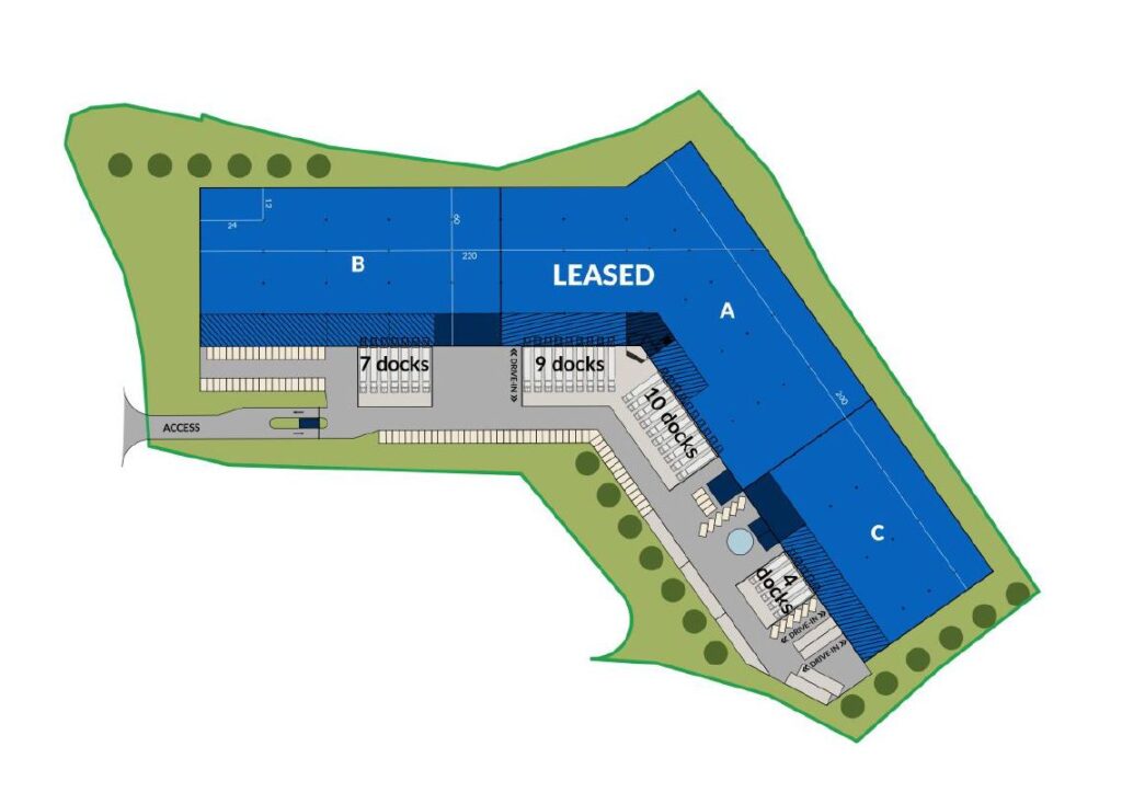 Areál tvoří jedna moderní skladová hala o celkové velikosti 21 200 m2, se světlou výškou 10 m a standardní nosností podlah (5 t/m2). Budova je rozdělena na tři jednotky o velikosti od 4 700 m2 do 9 600 m2. Celá hala je v současné době plně obsazena dlouhodobými nájemci. Další výstavba v tomto areálu již není možná.