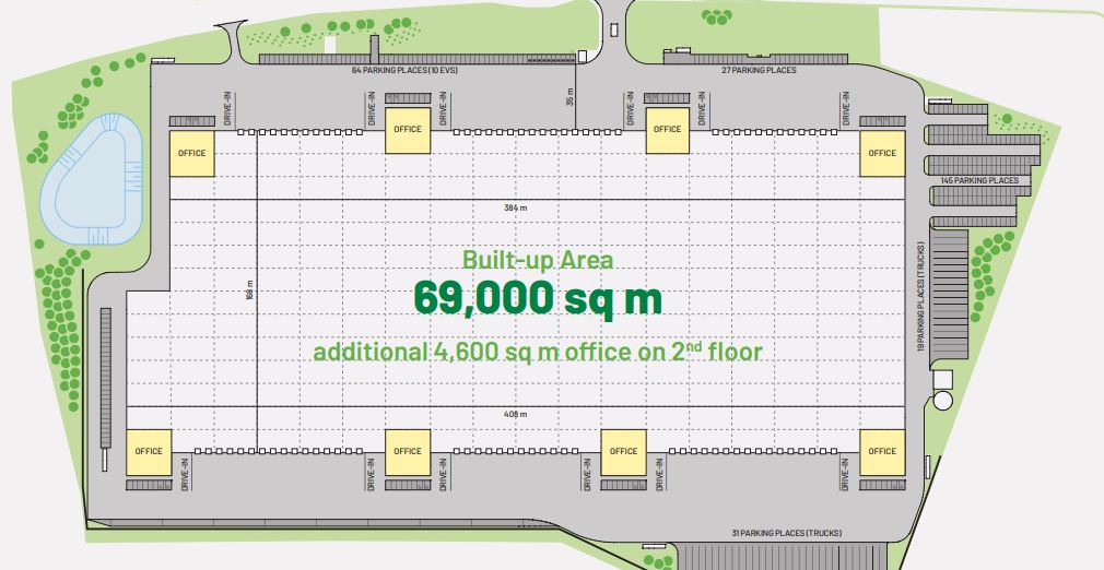 Plánovaná výstavba jedné průmyslové haly v místě brownfieldu o celkové velikosti 69 000 m2. Hala je plánovaná s čistou výškou 11,7 m a bude disponovat nákladovými rampami a přímými vjezdy. V areálu bude i dostatek parkovacích míst pro osobní i nákladní automobily. Prostory budou vhodné pro skladování, distribuci a logistiku.