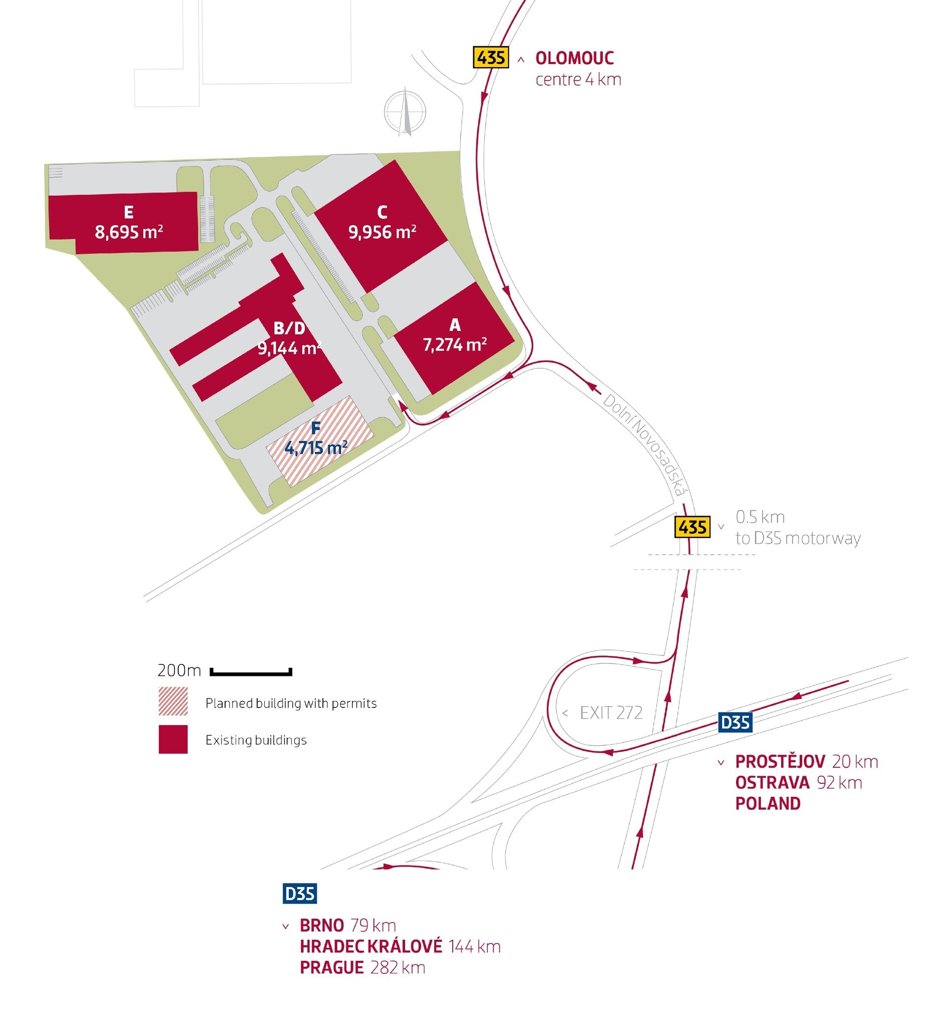 Areál se nachází v městské části Olomouc - Nemilany. V blízkosti exitu č. 272 na dálnici D35. Železniční stanice se nachází 1 km od areálu. Park je snadno dostupný z centra města městskou hromadnou dopravou.