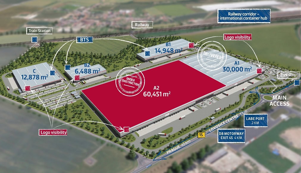 Areál v současné době tvoří dvě moderní skladové haly o celkové velikosti 116 000 m2. Prostory jsou vhodné pro skladování, logistiku, distribuci či lehkou výrobu. V plánu je výstavba dalších budovy o velikosti až 16 600 m2.