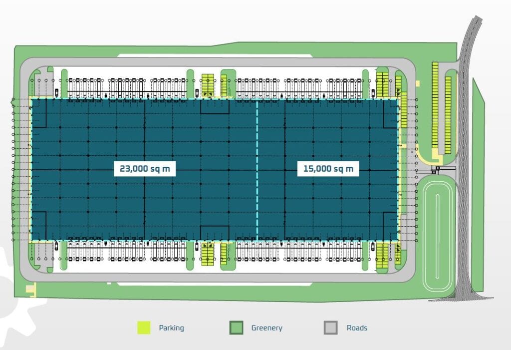 Samostatnou halu o velikosti 40 000 m2 je možné rozdělit do několika jednotek. Nejmenší jednotka má velikost 15 000 m2. Disponuje 62 rampami a 6 přímými vjezdy. Budova obdržela BREEAM certifikaci - Very good a vyznačuje se několika prvky ESG.