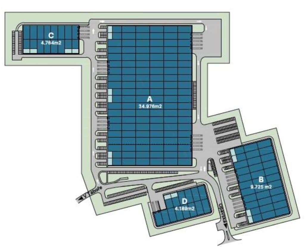 Plánovaná výstavba 4 hal v rozmezí od 4 000 m2 do 35 000 m2 o celkové rozloze 53 654 m2. Prostory budou vhodné pro skladování, logistiku, distribuci či lehkou výrobu.