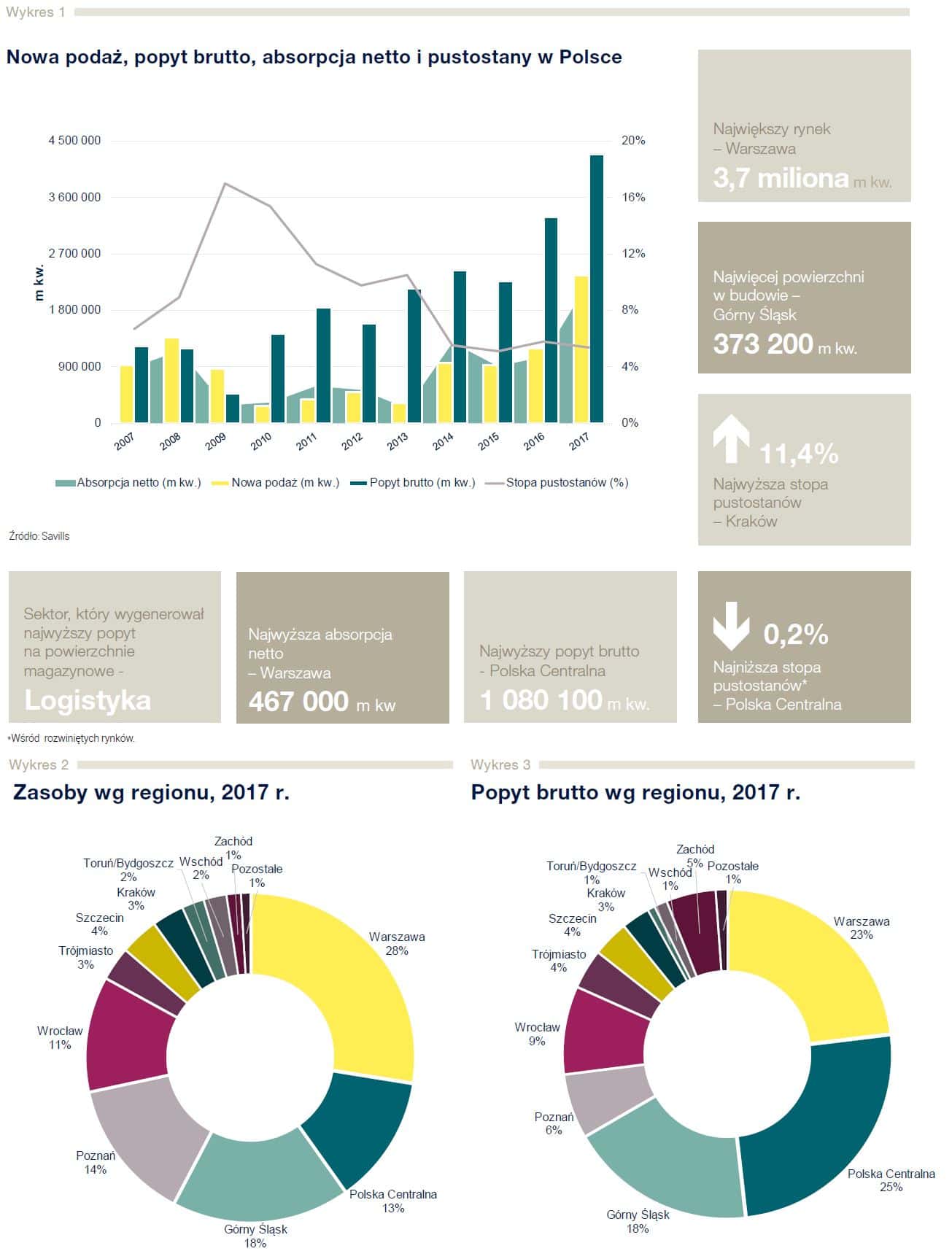 - The largest markets are: Warsaw (3.7 million sq m), Upper Silesia (2.4 million sq m), Poznań (1.9 million sq m), Central Poland (1.7 million sq m) and Wrocław (1.5 million sq m).